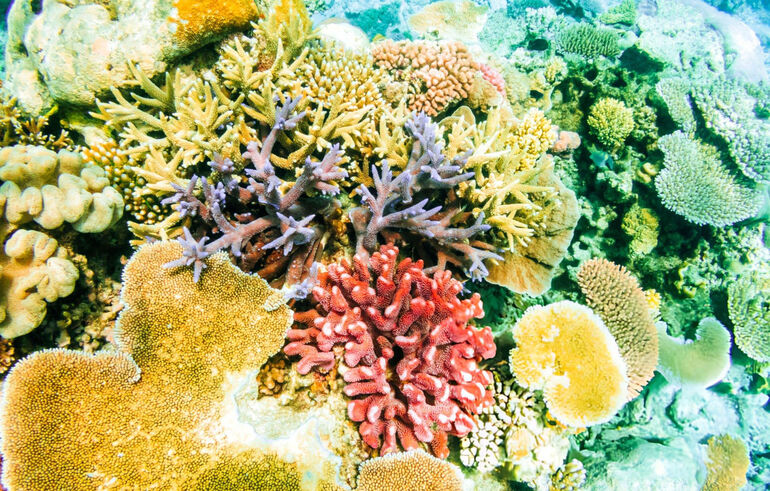 Кораллы разных цветов на Большом Барьерном рифе