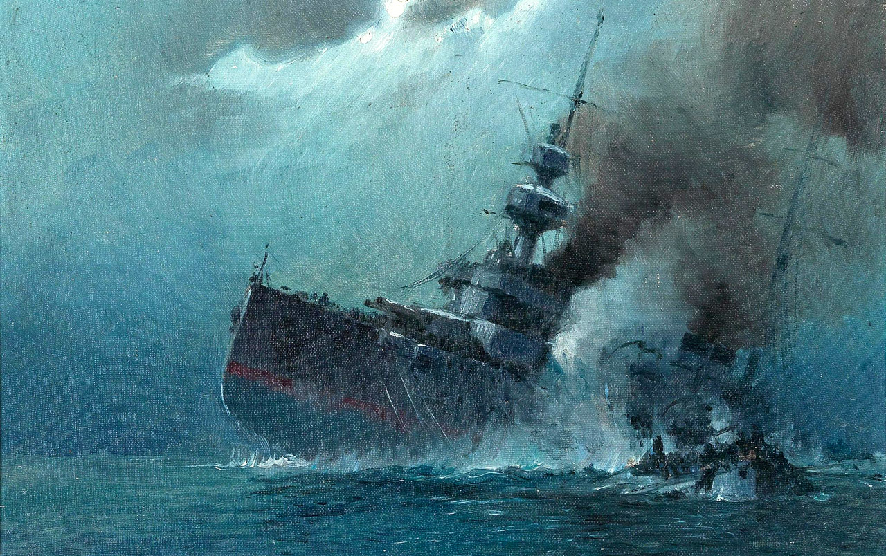 На заставке — гибель крейсера "Леон Гамбетта", картина австрийского художниика Августа фон Рамбурга.
