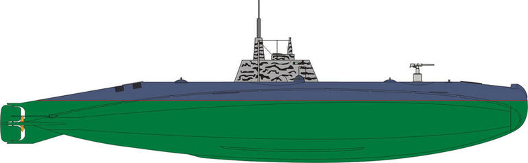 Подводная додка U-5: длина — 32 м, водоизмещение — 240/273 т, скорость — 10,5/8,5 узлов, вооружение — 2х45-мм торпедных аппарата и малокалиберная пушка. Экипаж — 19 человек. Лодка показана в окраске на момент торпедирования "Гамбетты". Обратите внимание на камуфлированную рубку.