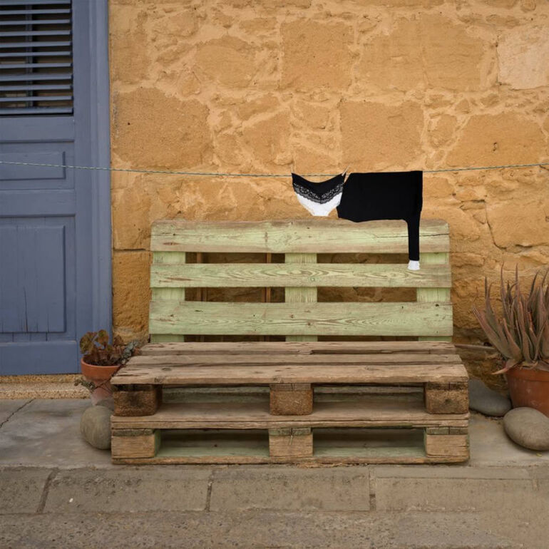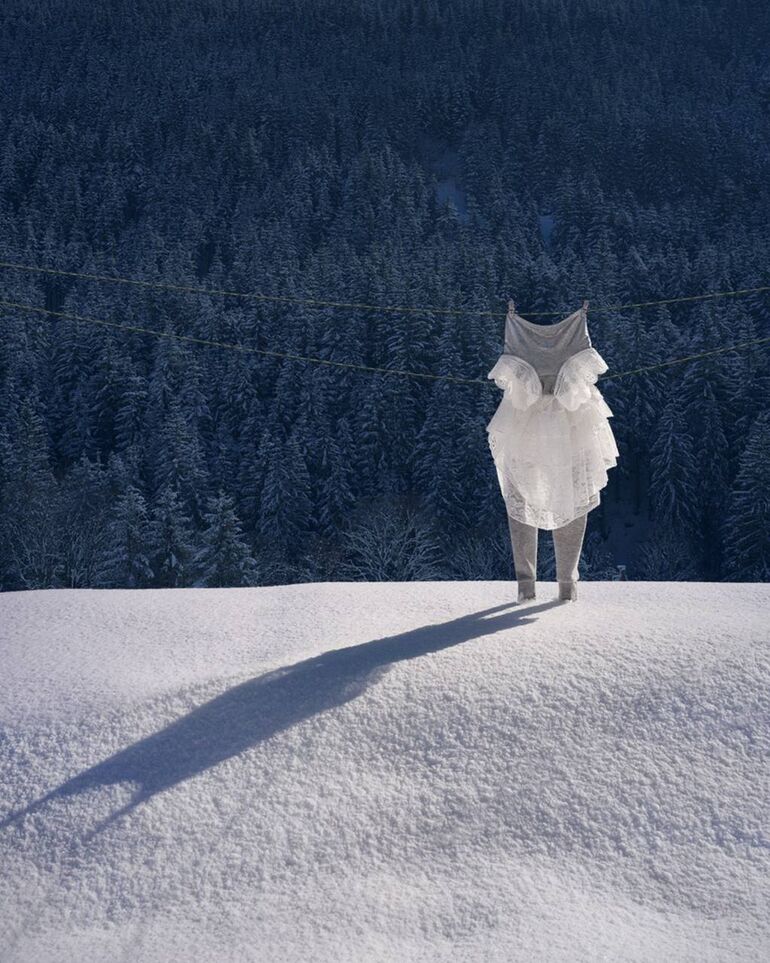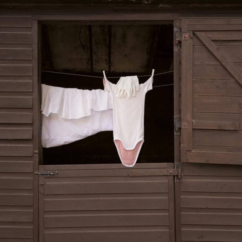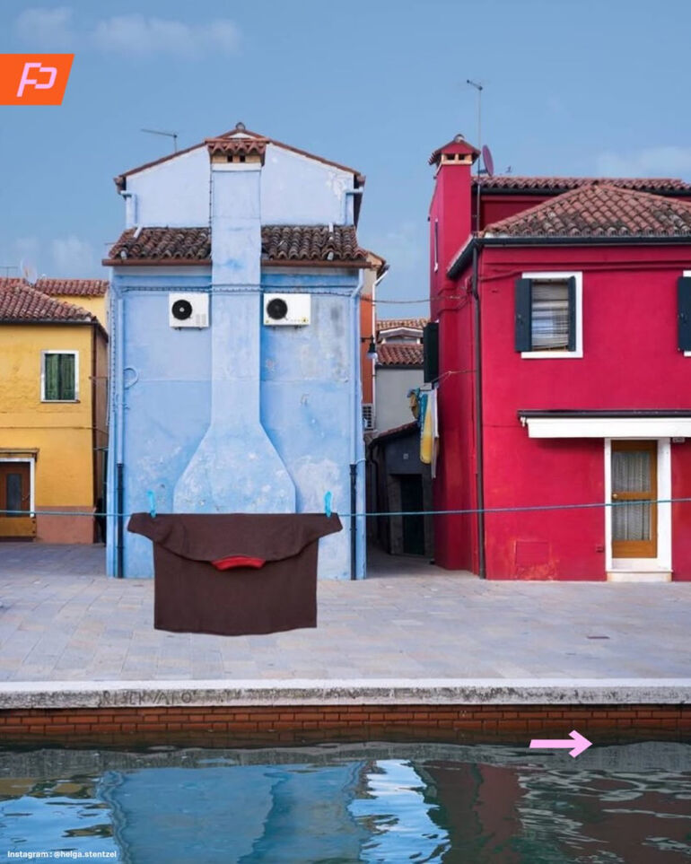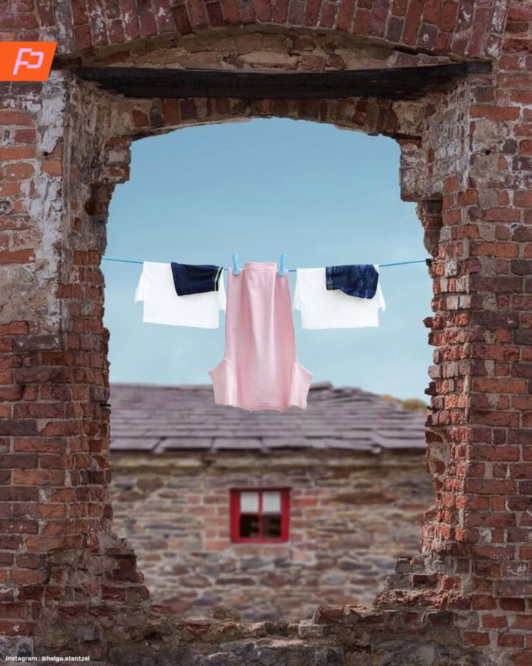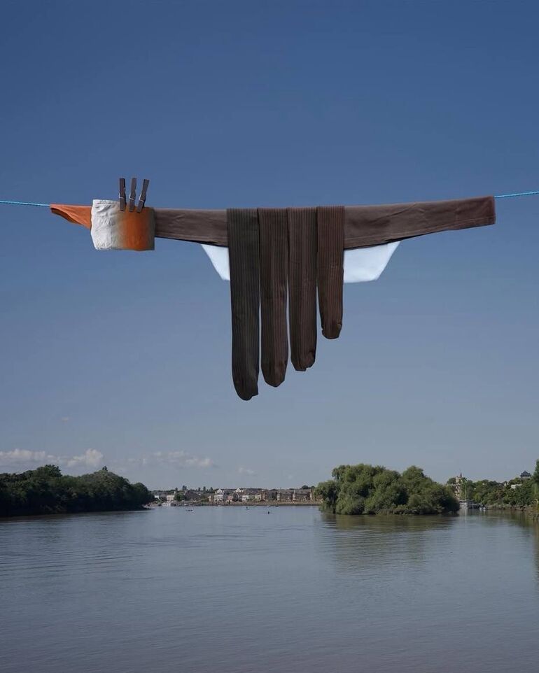 Художница известна тем, что использует бельевые веревки и одежду для создания игривых, творческих образов.