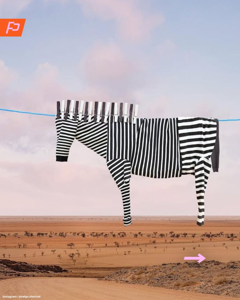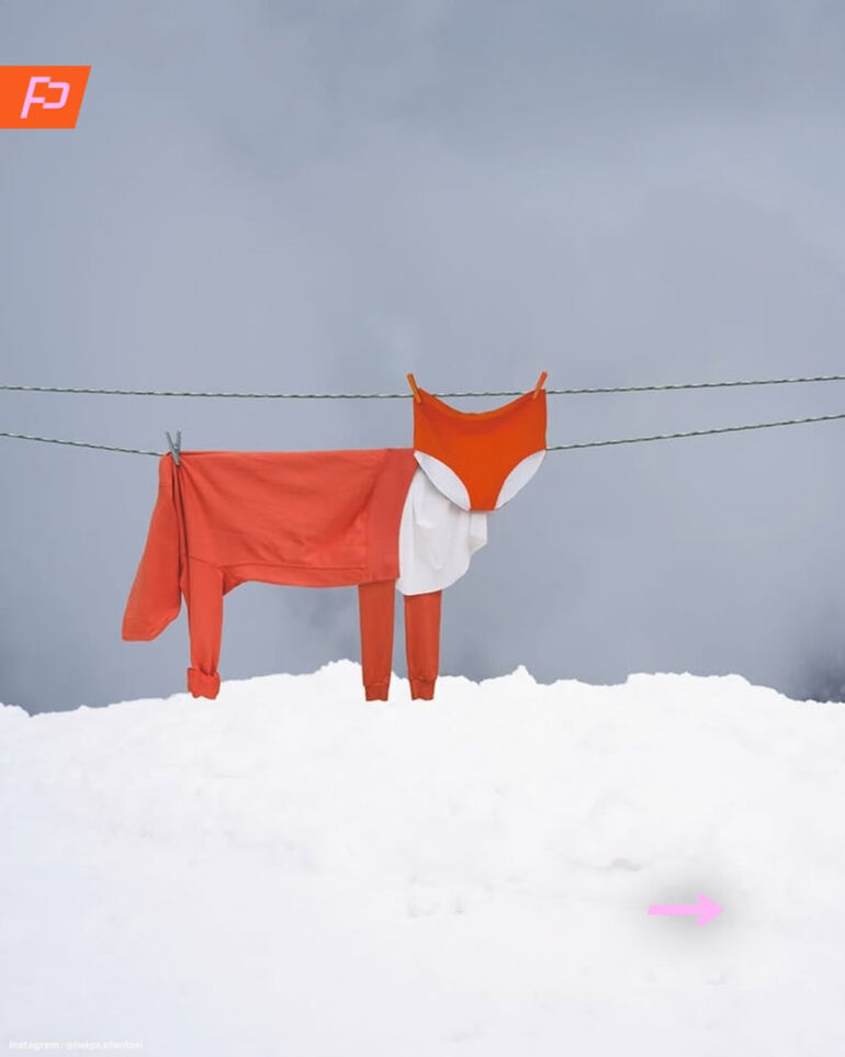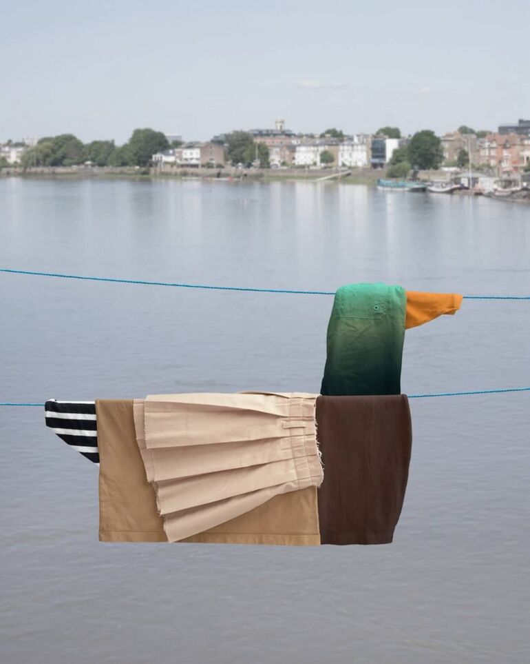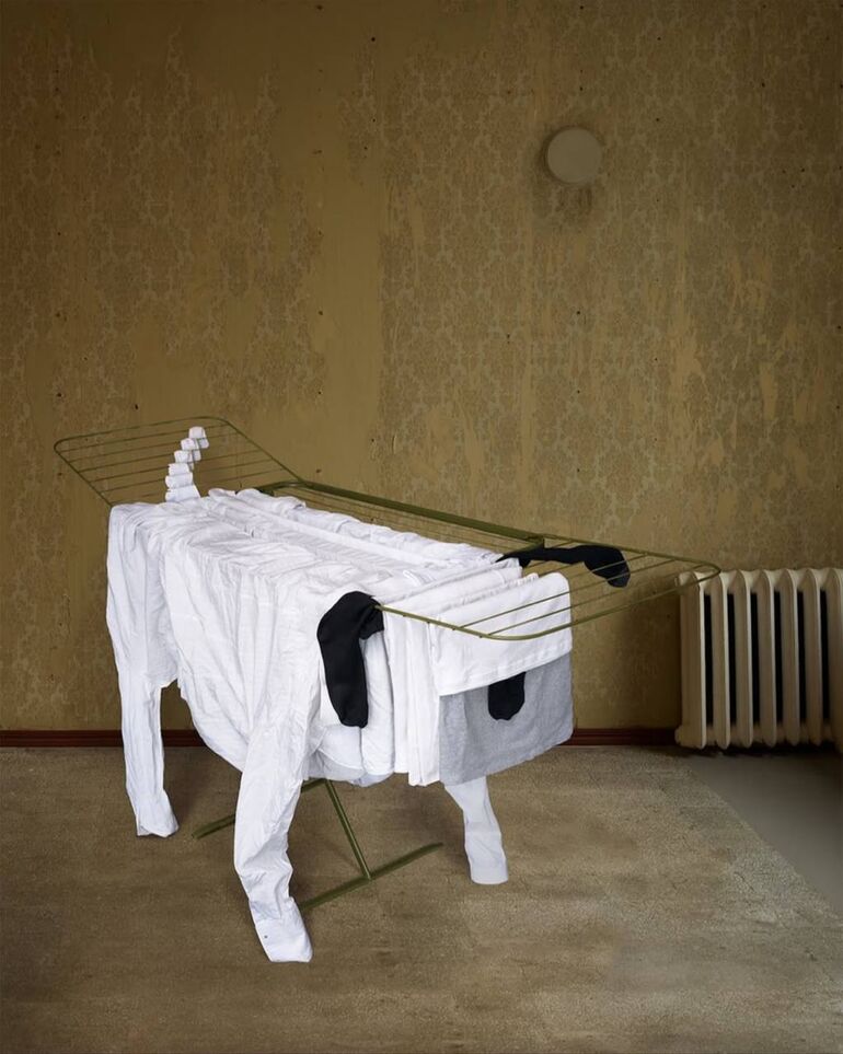 Она превращает повседневную рутину в искусство, создавая образ животного из предметов одежды.