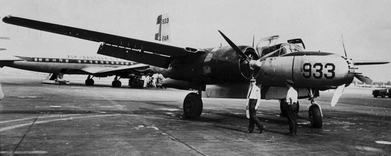 Один из "Инвэйдеров" FAL в аэропорту Майами. Самолет окрашен по стандарту кубинских ВВС и несет фальшивое обозначение FAR.