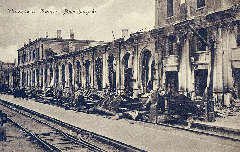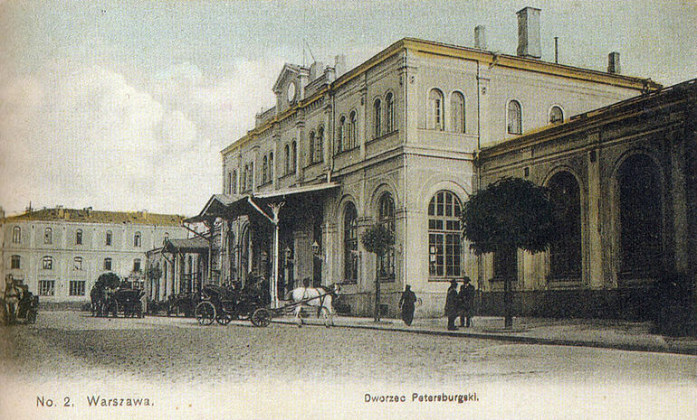 Открытка начала ХХ века с фотографией Петербургского вокзала в Варшаве.