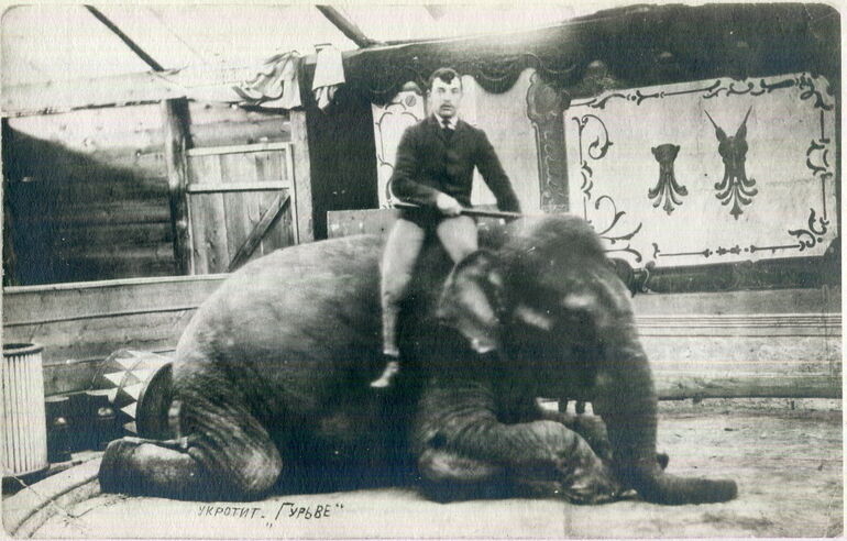 09. 1911. Слониха Бетти на арене цирка с укротителем Гурвье