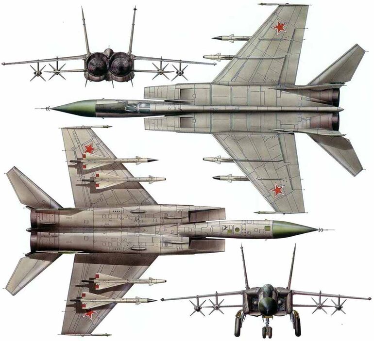 МиГ-25П с теми же ракетами в чеетырех проекциях.
