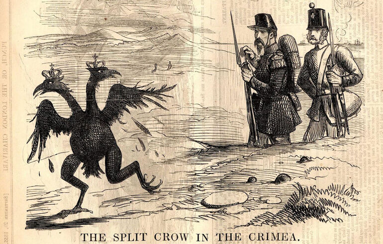 Издевательская карикатура из британского журнала "Панч" на поражение России от англичан и французов в Крыму. Забавно, что через полвека империя Романовых от великого ума ее последнего самодержца и его не менее мудрых советников вступила в Первую мировую войну на стороне именно этих держав. Результат, как говорится, хорошо известен.