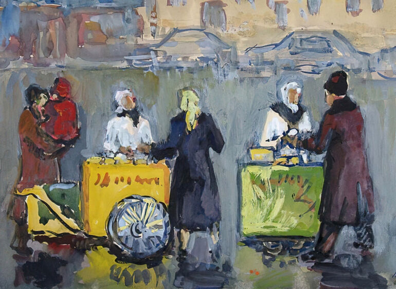 Варт-Патрикова Вера Васильевна. Мороженщицы. Бумага, смешанная техника. 1960