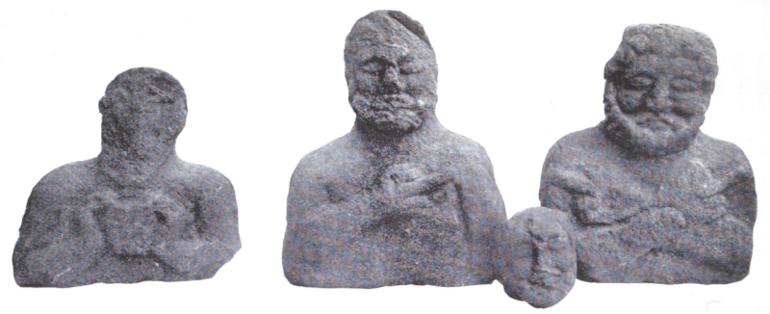 Римские каменные изображения из форта Бар-Хилл. Силен и бородатый мужчина с вытянутым средним пальцем.