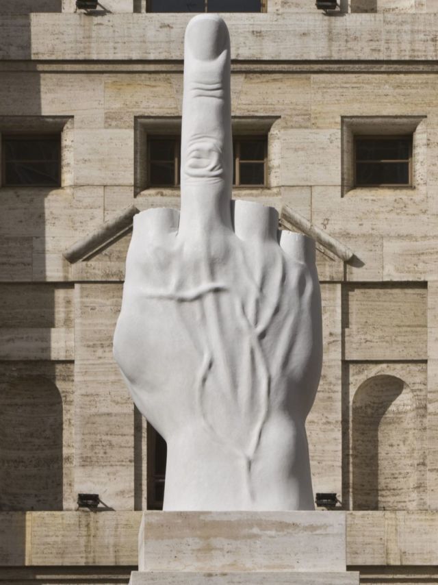 Официальное название четырехметровой скульптуры — L.O.V.E. Она стояла на Пьяцца Аффари неподалеку от Миланской фондовой биржи.
