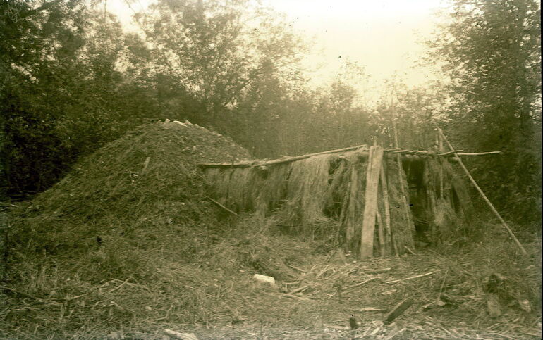 Внешний вид зимника - землянки в ст. Славо на р. Тым на о. Сахалин. Нивхи
