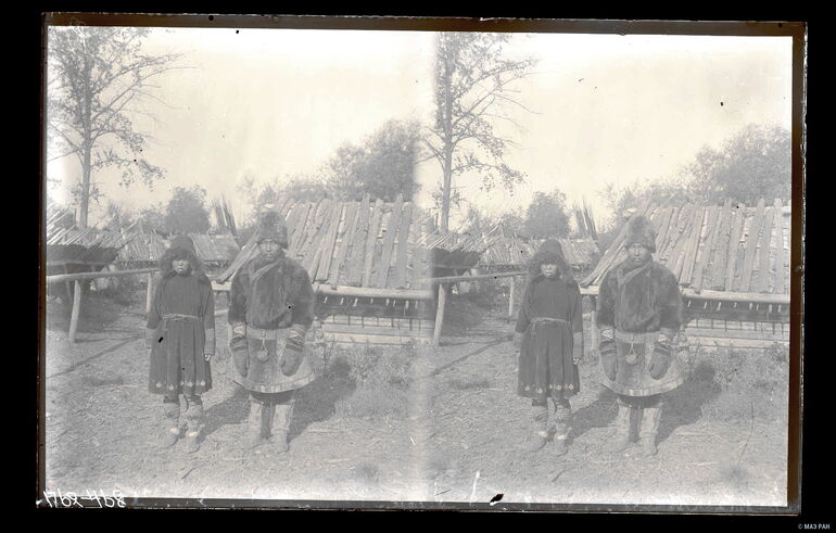 Гиляк Катка с женой в зимнем платье. Нивхи. Сахалинская область