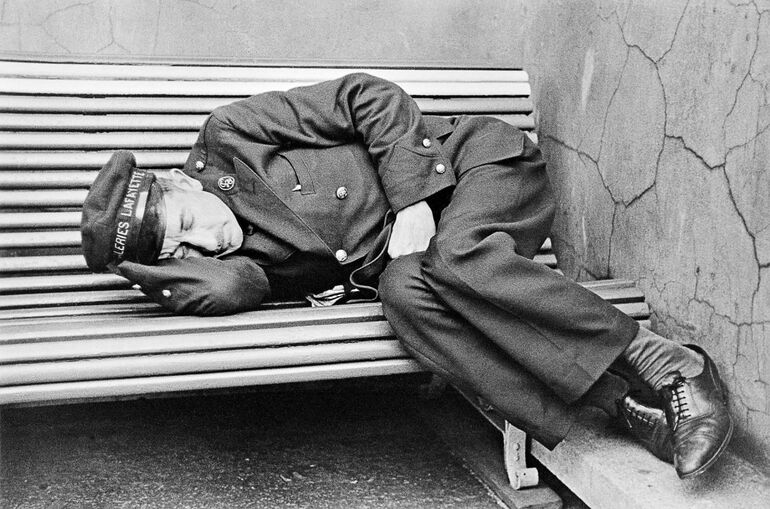 1944. Роберт Капа на эсминце во время прибытия корабля на французский пляж для высадки десанта и освобождения Франции