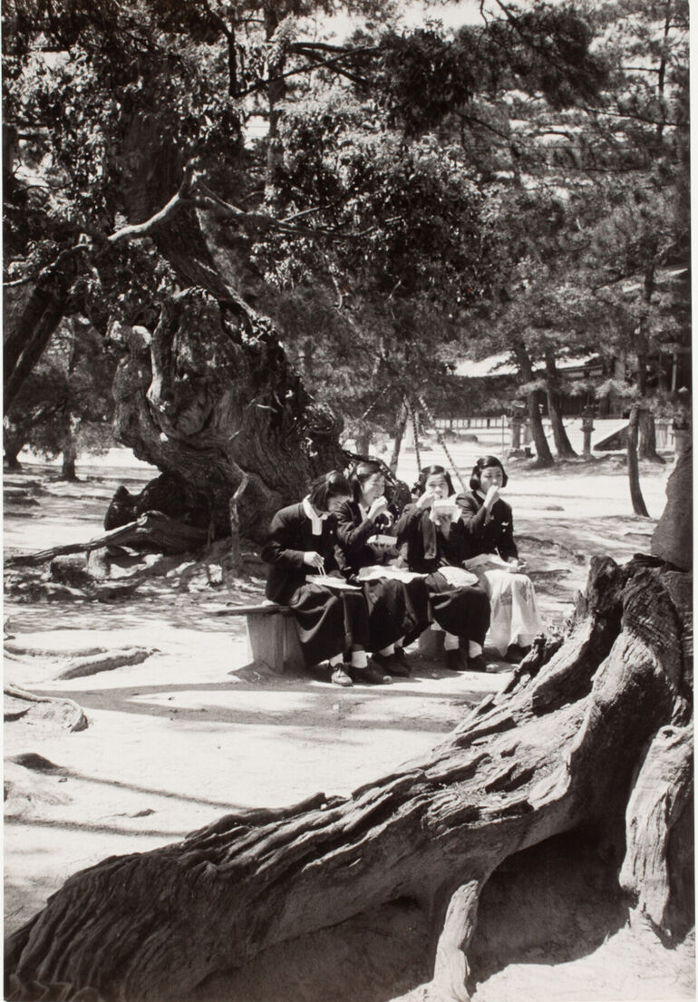 1954. Две девочки рисуют на валуне, Осака, апрель