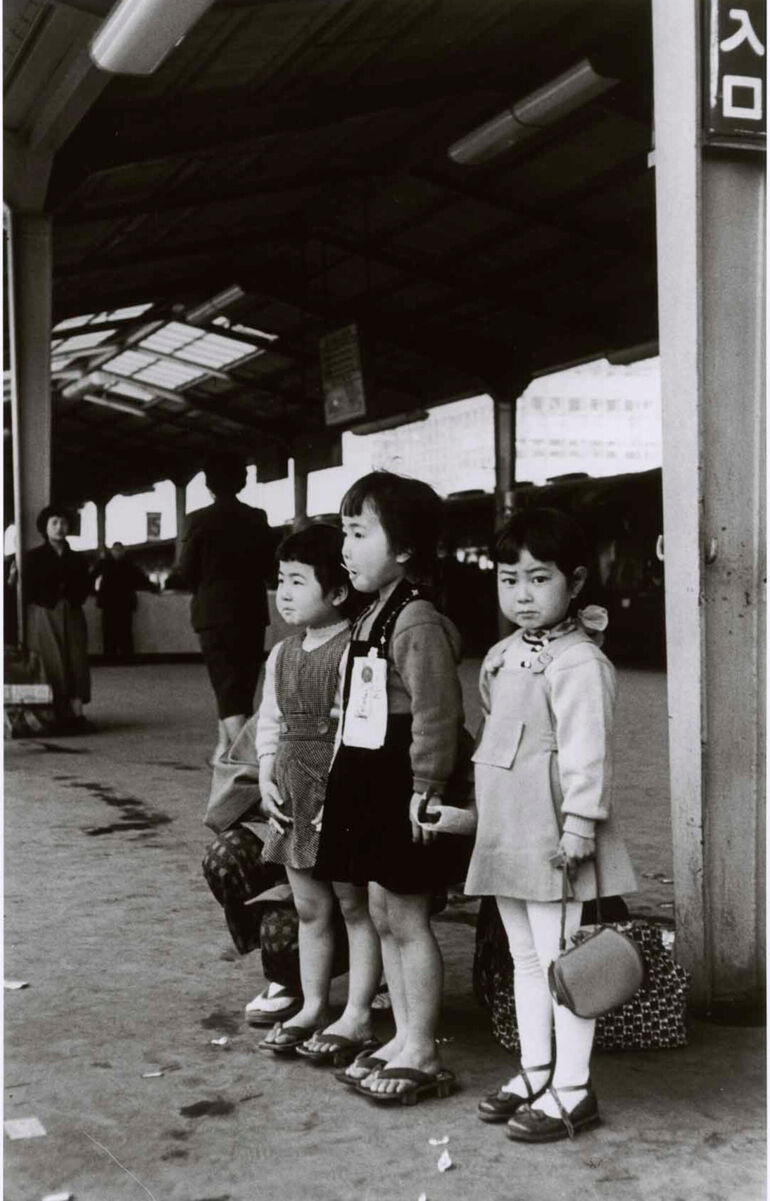 1954. Дети на платформе поезда, Токио, апрель