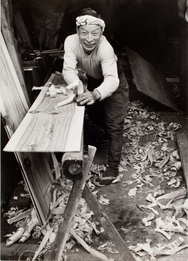 1954. Плотник строгает доску, Гиндза, Токио, Япония