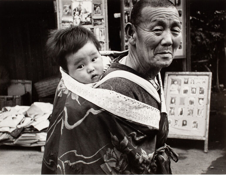 1954. Мужчина с младенцем за спиной, Асакуса, Япония, апрель