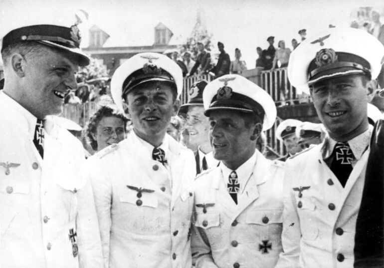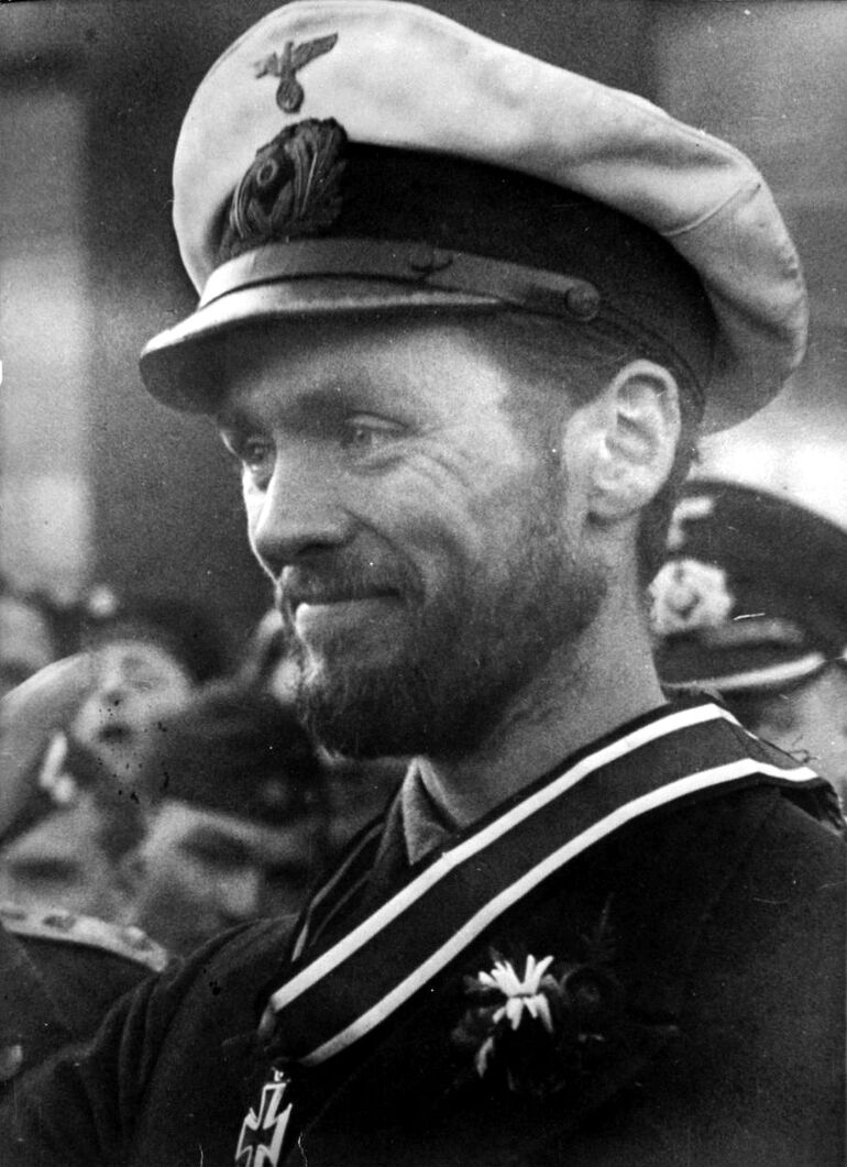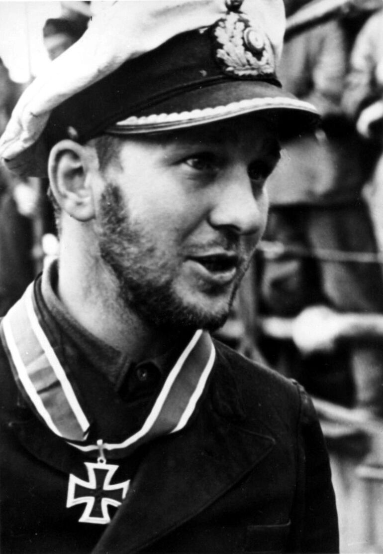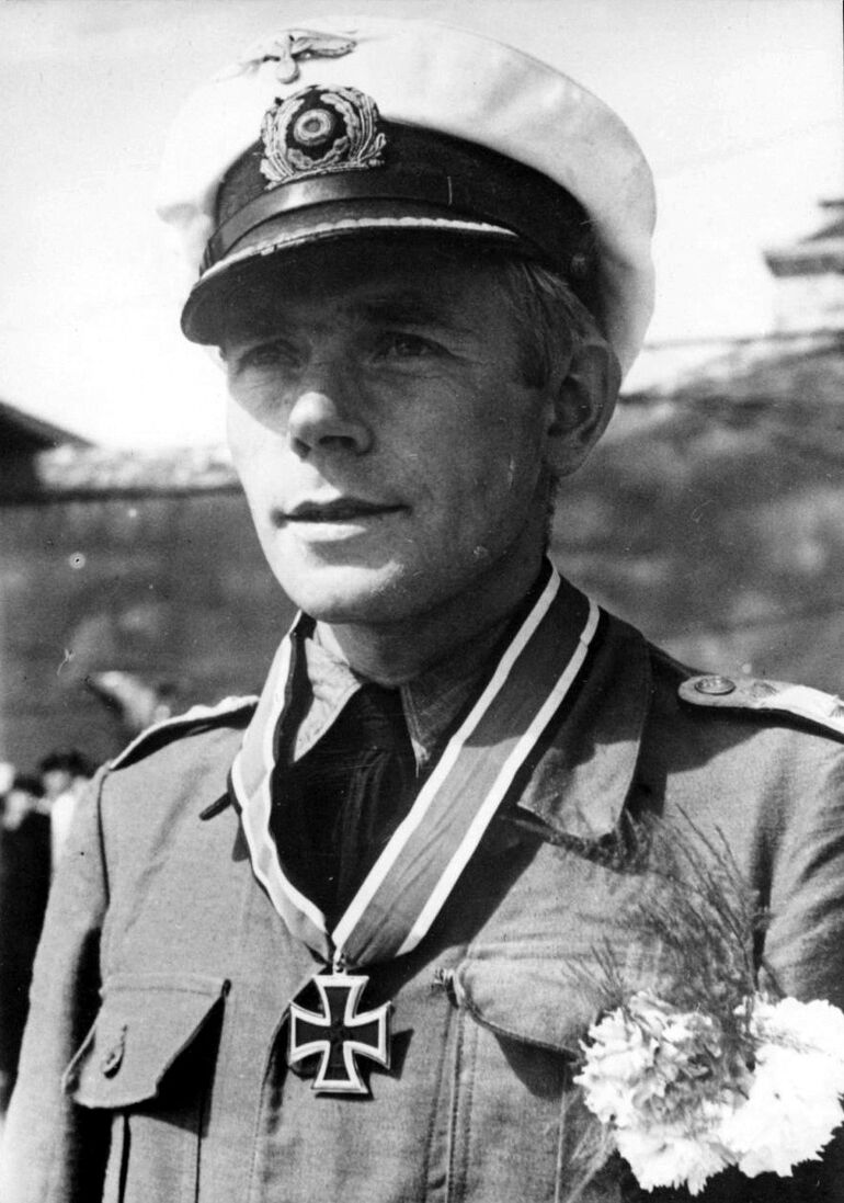 1942. 09.02. Командир немецкой подводной лодки U-123 капитан-лейтенант Рейнгард Хардеген после награждения Рыцарским крестом во французском порту Лорьян