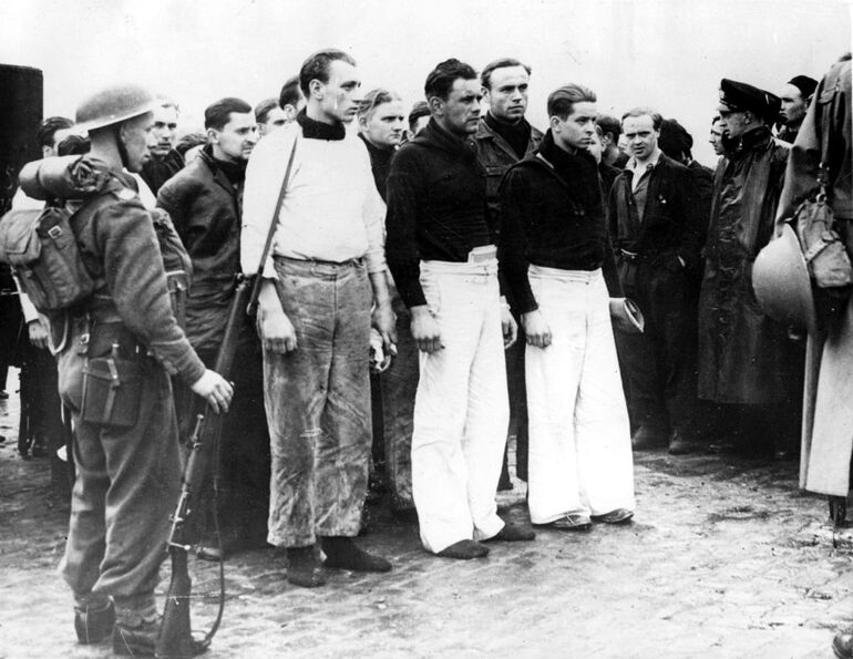1941. Пленные матросы с потопленного немецкого линкора «Бисмарк» после прибытия в Великобританию