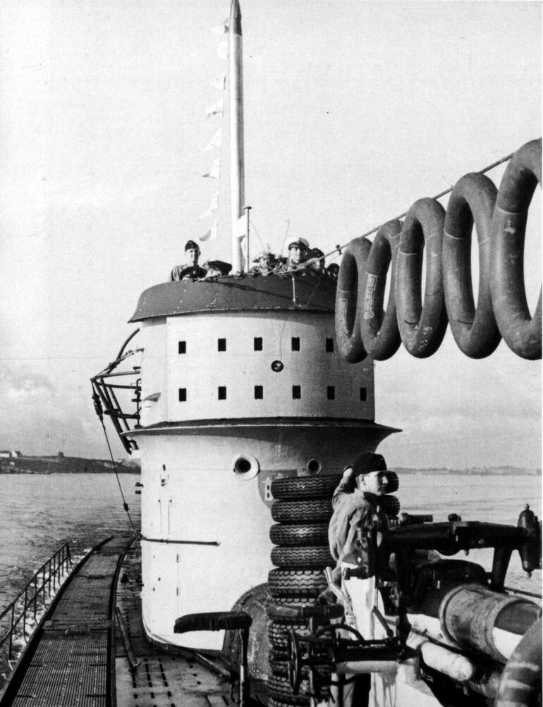 1942. 16.11. Немецкая подводная лодка U-156 (тип IX-C) в гавани французского порта Лорья