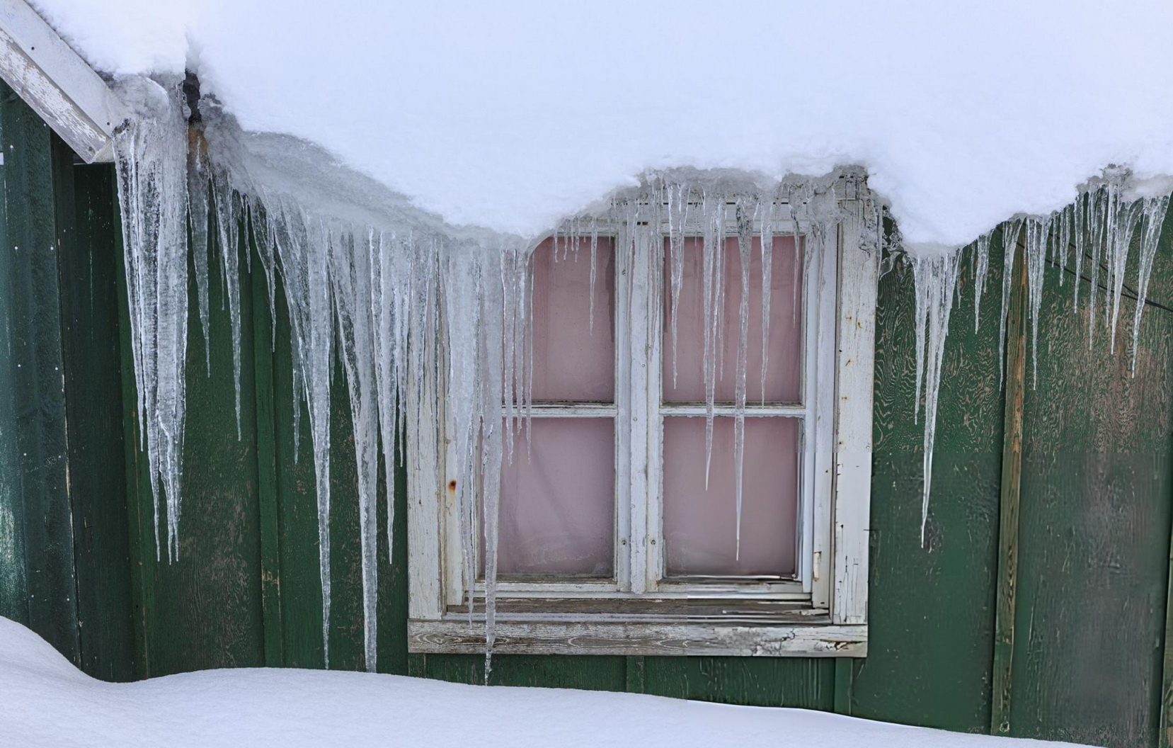 Гренландские собаки в глубоком снегу перед поселением инуитов