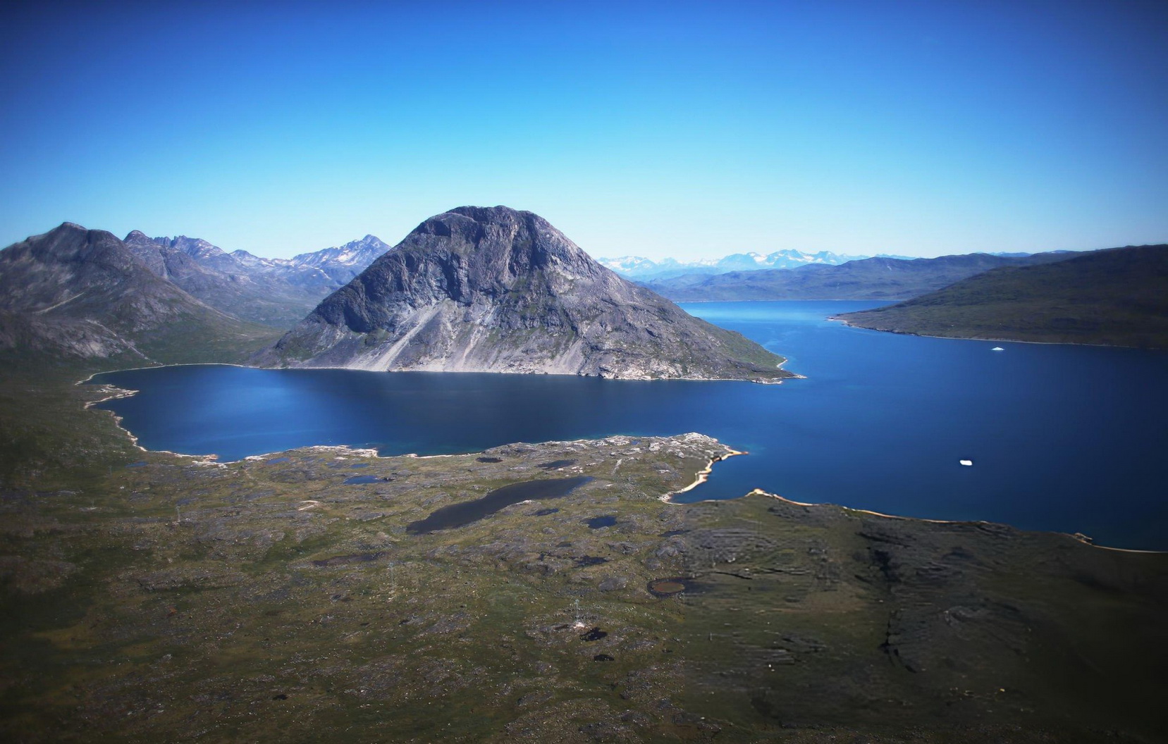 Нанорталик. Суровые, бесплодные горы, облака и фьорд сверху