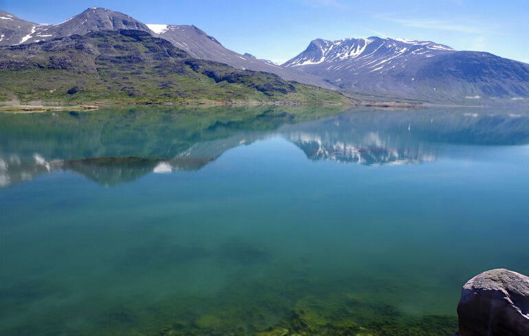 Тасилак. Огромные айсберги, торчащие из воды, бесплодный прибрежный пейзаж