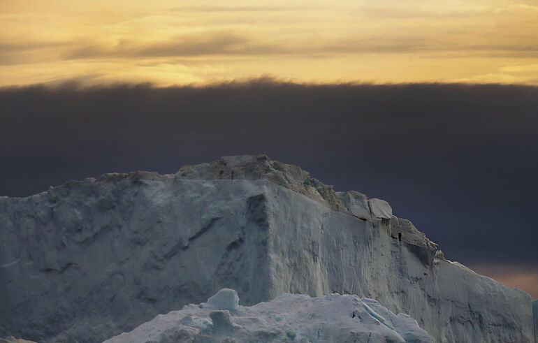 Илулиссат. Вид на айсберги, обломки ледникового льда, плавающие в фьорде