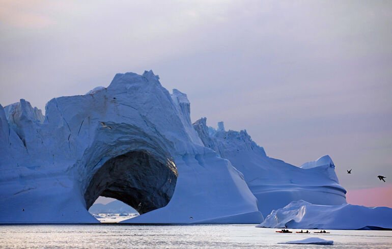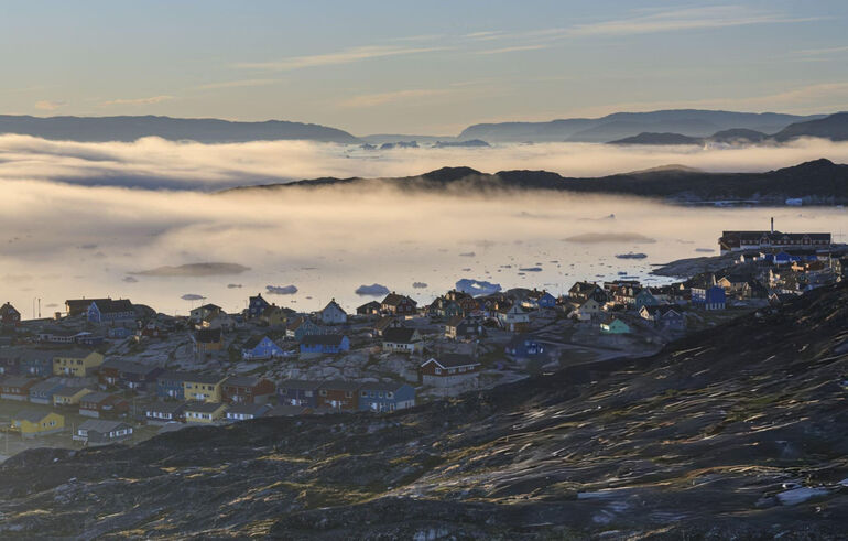 Илулиссат. Инуитское поселение на фоне айсбергов в тумане