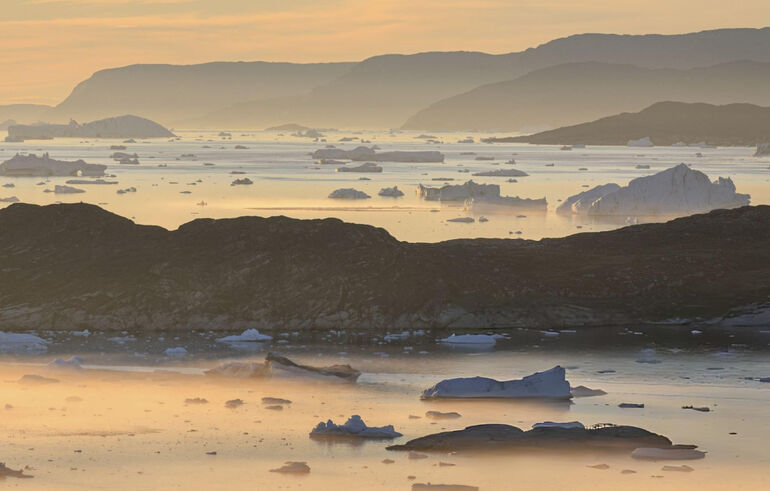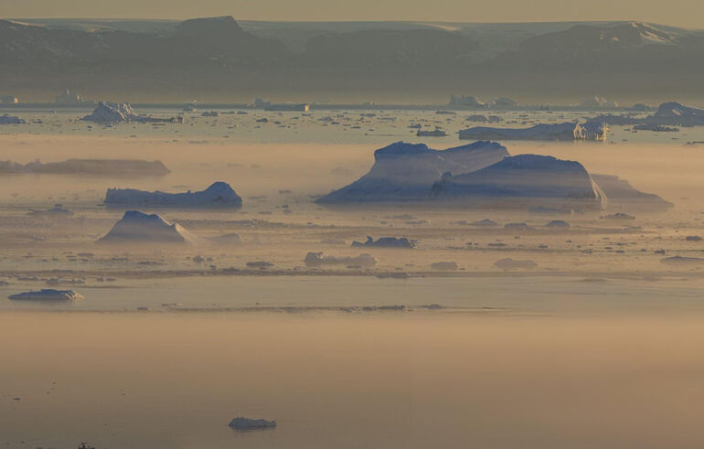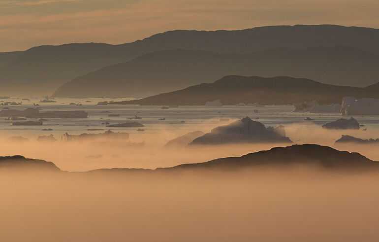 01. Илулиссат. Айсберги в тумане, полуночное солнце