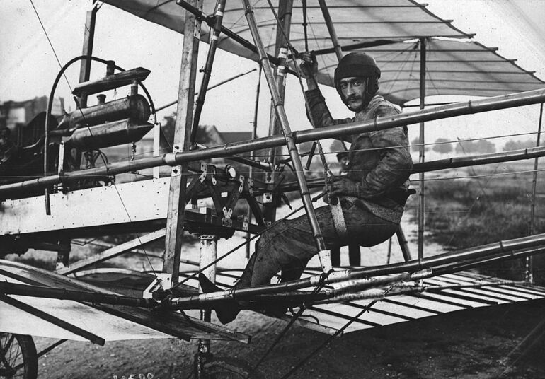 Фердинанд Фербер в своем последнем аэроплане с мотором мощностью 24 л.с. Обратите внимание на конструкцию "сиденья".