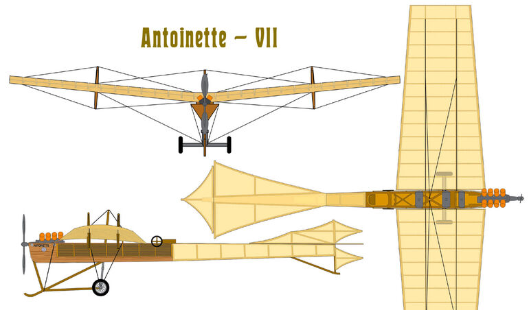 Схема "Антуанетт VII" с восьмицилиндровым 50-сильным мотором.