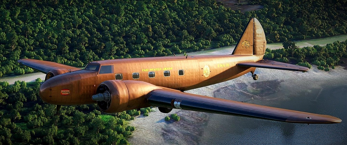 На заставке — компьютерный рисунок "Боинга-247" в золотисто-коричневой ливрее авиакомпании "Фаст Вестерн Эйрлайн".