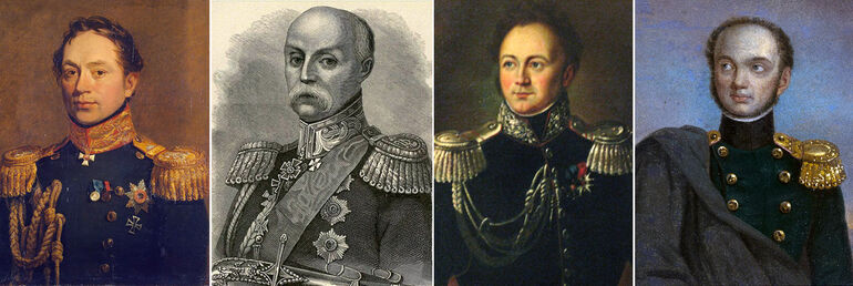 Главные действующие лица Иганской баталии: генерал Гигорий Розен, генерал Каспар фон Гейсмар, генерал Игнаций Прадзиньский и командир польской артиллерии майор (впоследствии — генерал) Юзеф Бем.