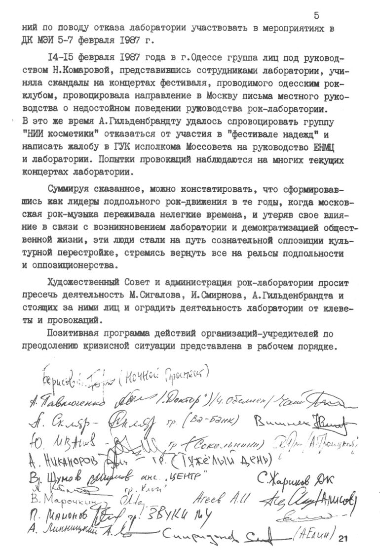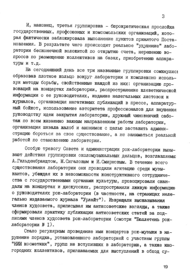 Статьи в этих «рок-бюллетенях» подписывались как именами активистов роклаба, так и легендарных шпионов типа Сиднея Рейли. В общем, веселые были документы. По идее, нами было прям-таки подчеркнуто, что это не какой-то реальный «бюллетень» рок-лаборатории, а стебовый провокативный арт-проект.