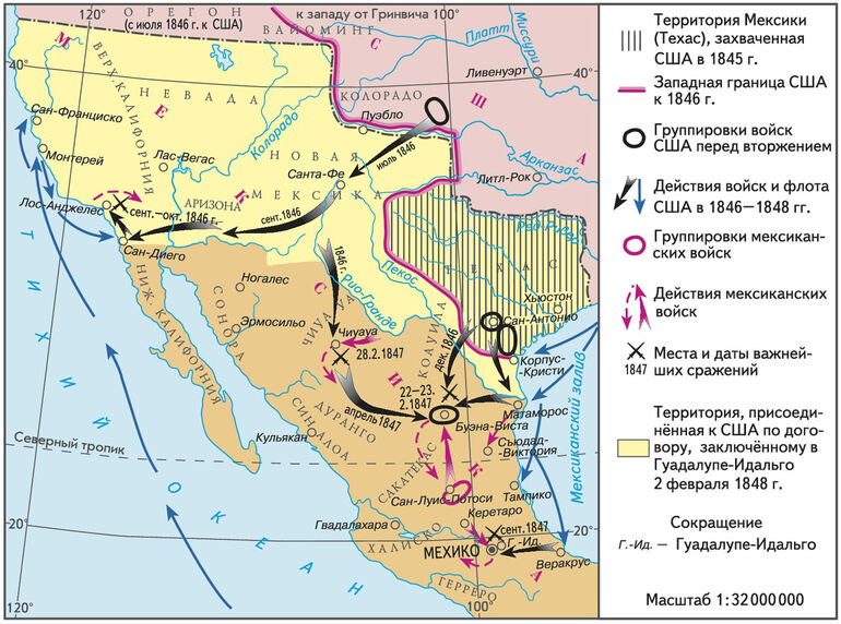 Однако о дальнейших интересных перипетиях этой войны речь еще впереди. А пока замечу, что это была первая крупномасштабная агрессивная война США (если не считать многочисленных индейских войн), которую американцы выиграли, тем самым значительно упрочив свое положение на международной арене, особенно — в Западном полушарии.