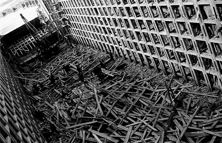 Механизация — деревянный свайный копер со ступальным колесом, изобретенный еще в Древней Греции.