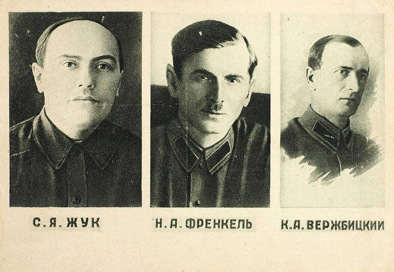 Открытка с портретами руководителей строительства Беломорканала.