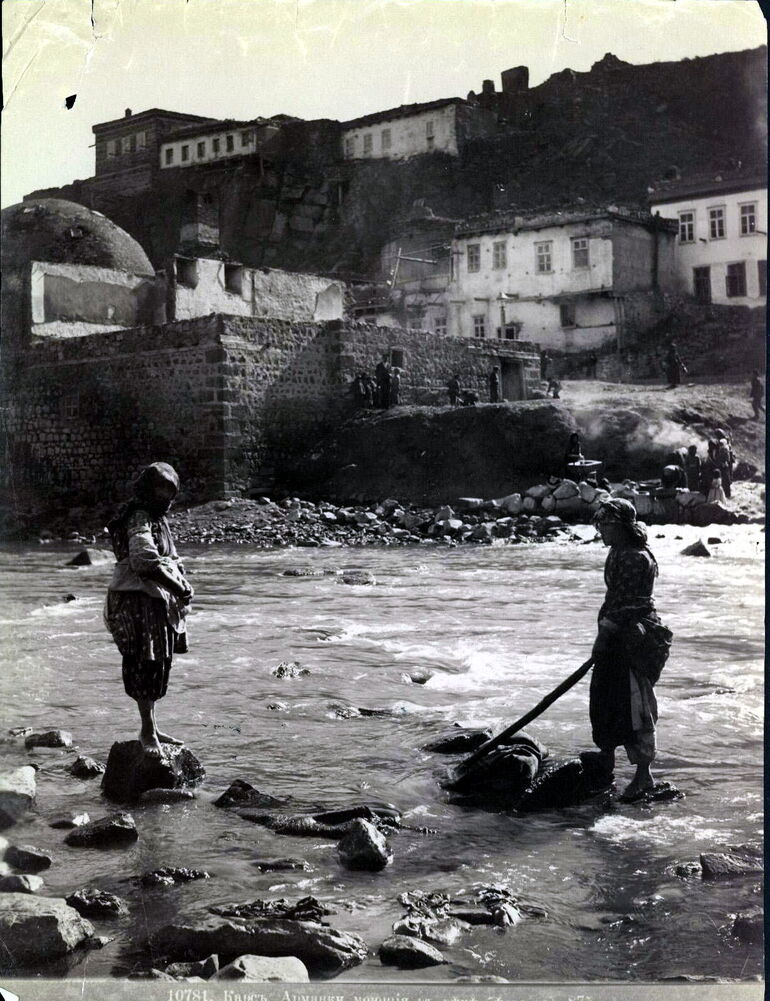 Карс. Армянки, моющие в реке белье