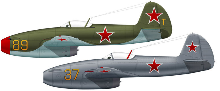 Разумеется, оба первенца были истребителями — легкий однодвигательный Як-15 и тяжелый двухдвигательный МиГ-9. Советское руководство, в отличие от немцев и англичан, решило не тратить время на разработку опытно-экспериментальных изделий, а приказало сразу проектировать боевые машины. Тем более что в его распоряжении были немецкие инженеры и трофейные немецкие двигатели Jumo-004 и BMW-003, которые у нас скопировали и вскоре после войны запустили в серию под обозначением РД-10 и РД-20.
