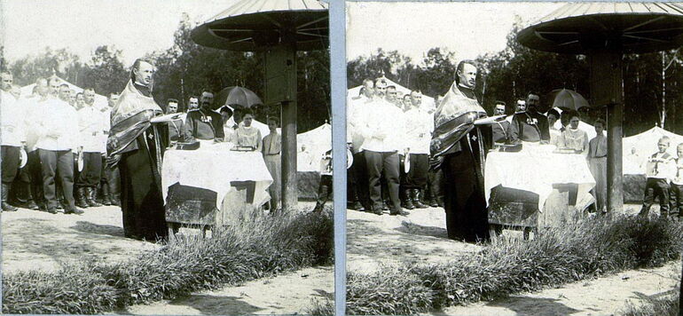 1910. Молебен на плацу перед вступлением в лагерь