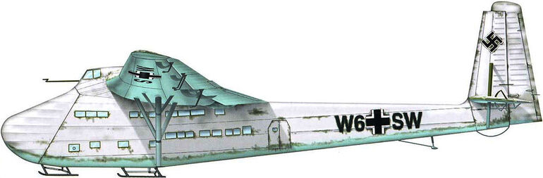 Габариты грузового отсека "Гиганта" позволяли размещать в нем средний танк, два грузовика, два полугусеничных бронетранспортера или 88-миллиметровую пушку с тягачом и боекомплектом. Размах крыла "Гиганта" составлял 55 м, длина фюзеляжа - 28,5 м, масса конструкции — 11 тонн, экипаж — 3 человека: двое пилотов и бортрадист.