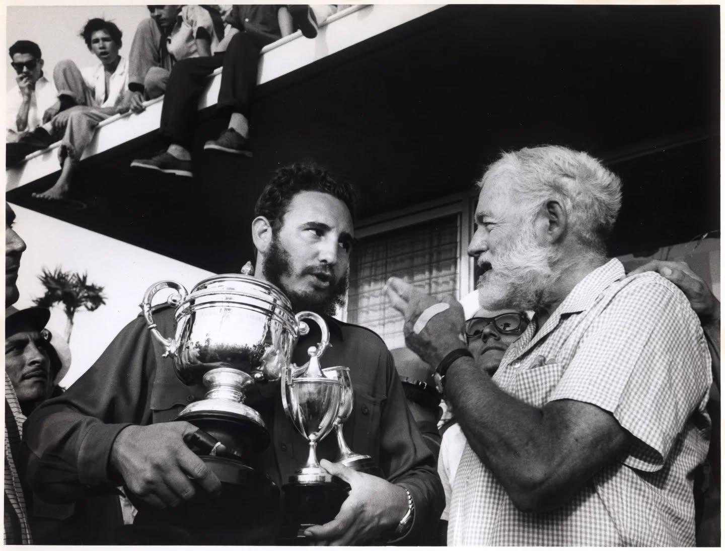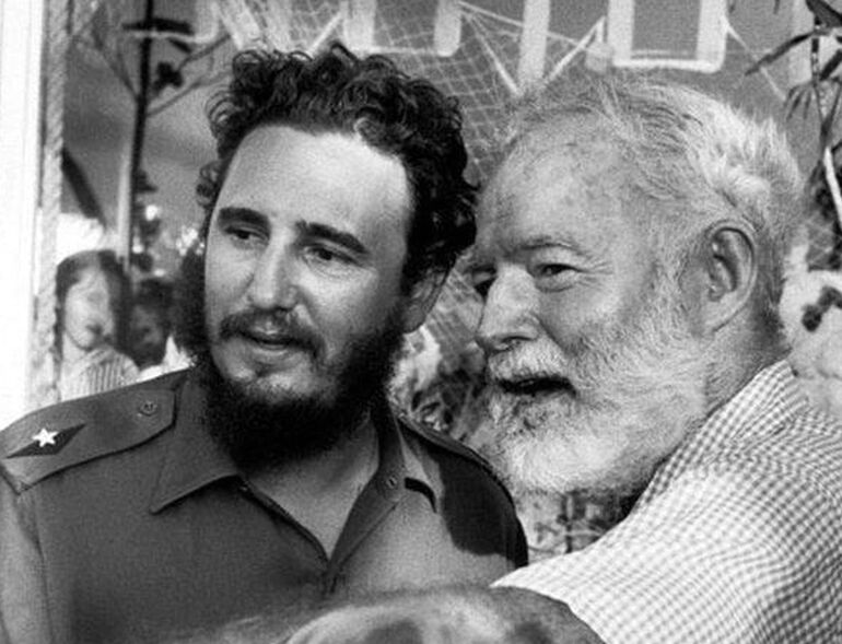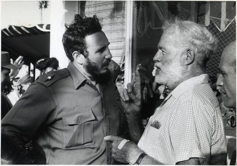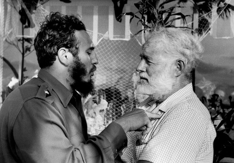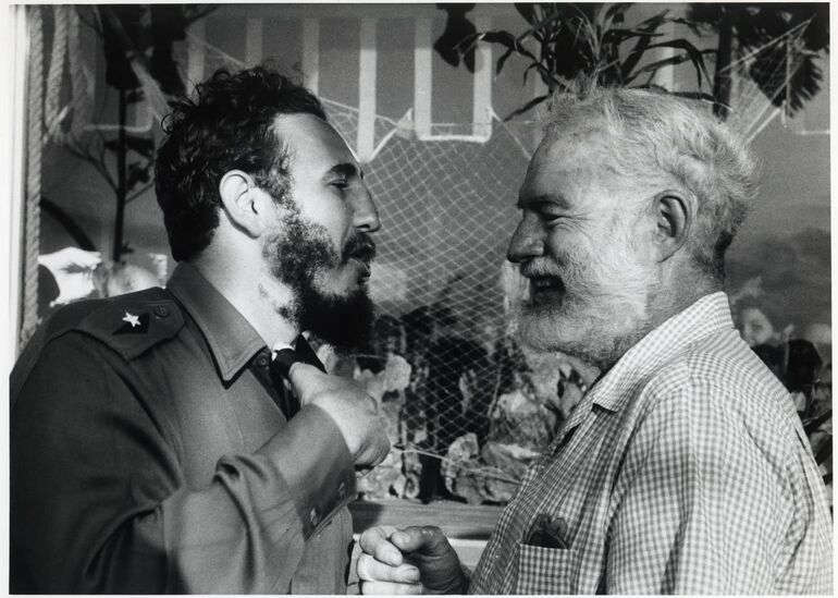 01. 1960. Фидель Кастро и Эрнест Хемингуэй во время церемонии награждения победителей 11-го ежегодного рыболовного турнира, названного в честь американского писателя, в Гаване. 15 мая