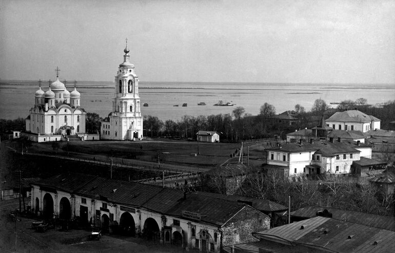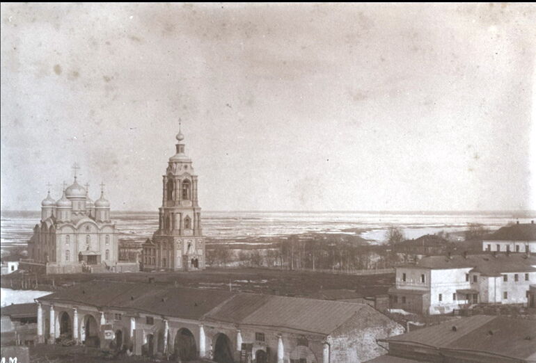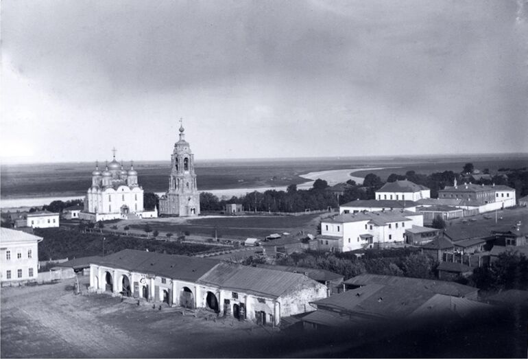 371. Центральная часть города с кафедральным собором Рождества Богородицы, торговыми рядами, с видом на р. Оку.1896