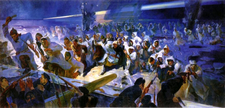 Картина советского художника Рудольфа Френца "Подавление Кронштадтского мятежа", 1935 год.