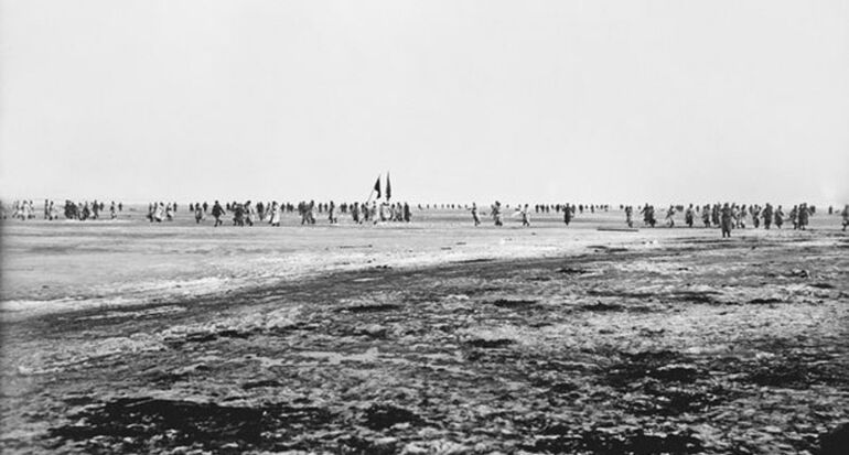 Пехота, одетая в маскхалаты, 17 марта 1921 года идет в атаку по льду Финского залива.