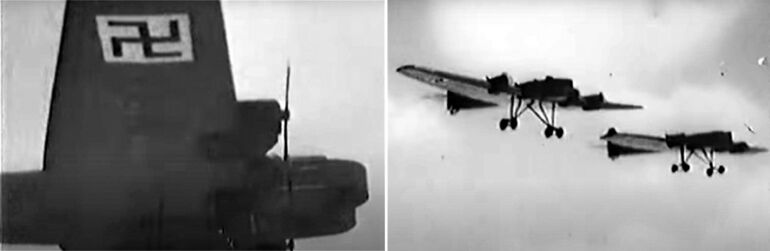 Фашистские бомбардировщики (на самом деле — деревянные макеты) из фильма "Родина зовет".