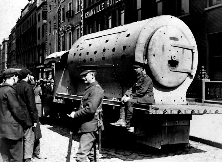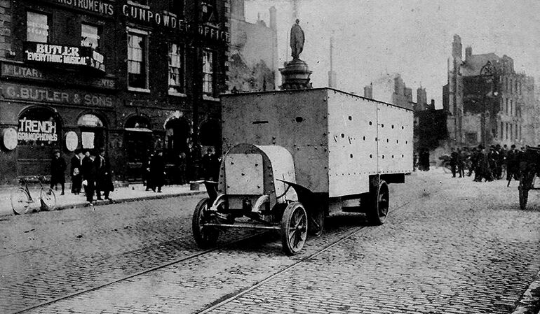 Во время Пасхального восстания англичане в очередной раз проявили свою находчивость, оперативность и мастеровитость. 26 апреля британские военные для передвижения по простреливаемым улицам всего за 10 часов соорудили импровизированный броневик из трехтонного грузовика "Даймлер", который раньше обслуживал пивной склад, железных листов и оболочки паровозного котла.