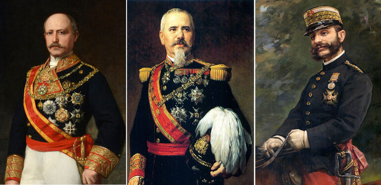 Главные оппоненты дона Карлоса: Генерал Франсиско Серрано и Домингес — временный президент Испании в 1873-74 годах, маршал Арсенио Мартинес-Кампос — главнокомандующий армии короля Альфонсо XII и сам король.