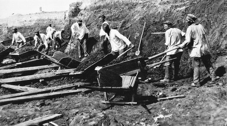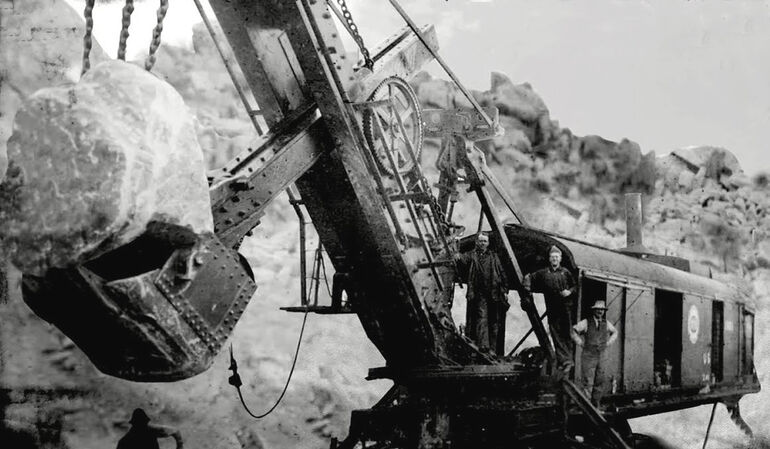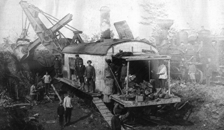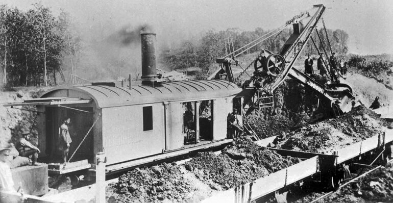 Все эти ответы будут верными, но лишь отчасти, поскольку главным фактором, без которого эти стройки были бы физически невозможны (по крайней мере, в сопоставимые сроки), были паровые экскаваторы, позволившие в десятки раз ускорить темпы земляных работ.