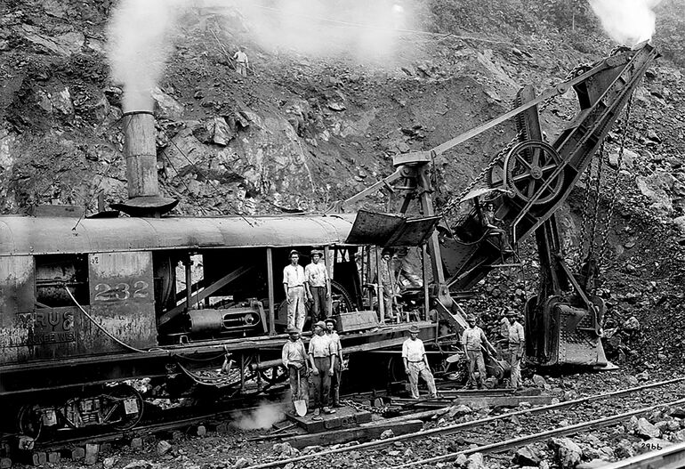 "Паровая лопата" Томпсона копает Панамский канал. В работах по строительству этого масштабного гидротехнического сооружения было задействовано 119 экскаваторов, из них 77 — фирмы "Бьюсайрус".